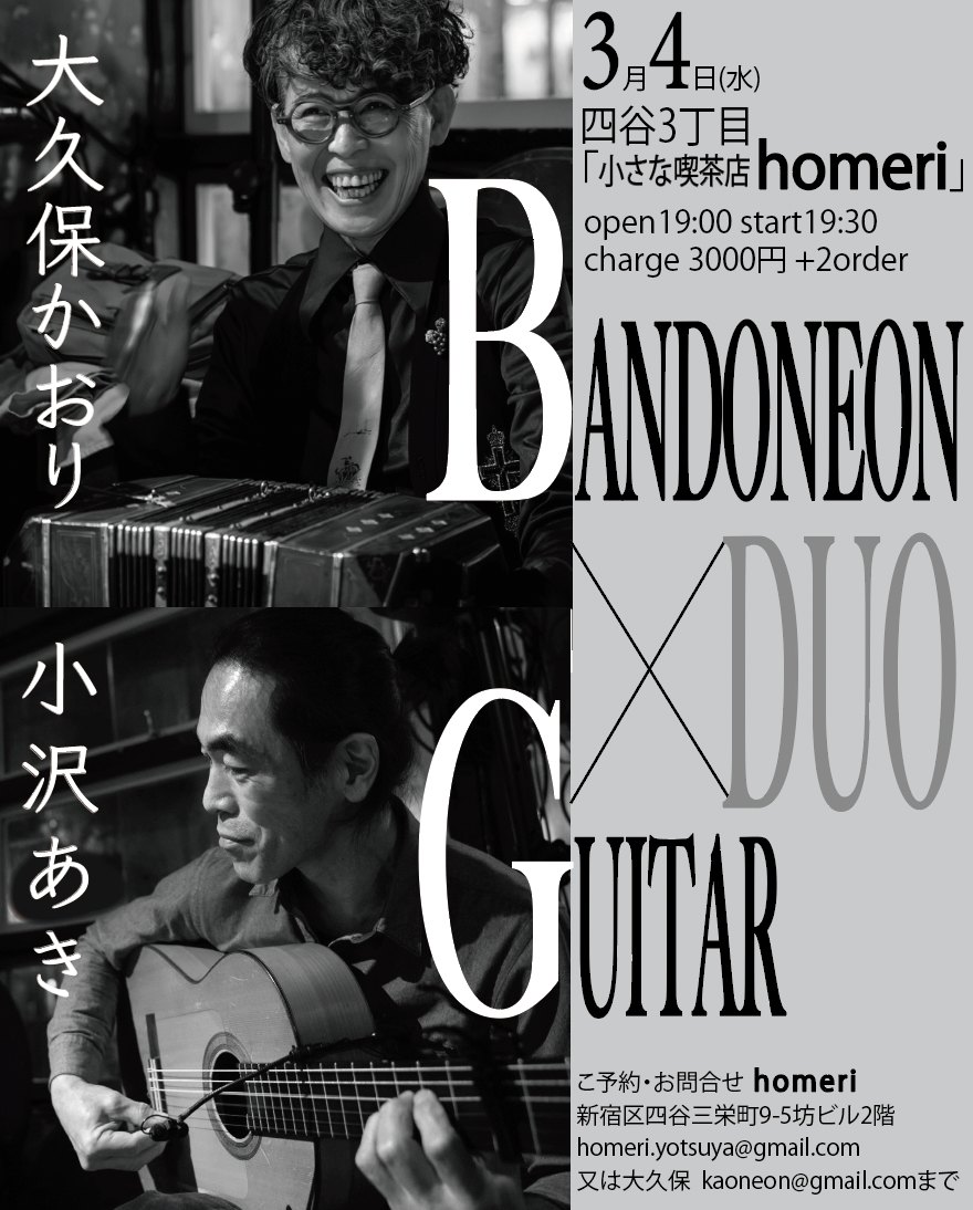duo bandoneon × piano 準備中 bandoneon × contrabass bandoneon × guiter
