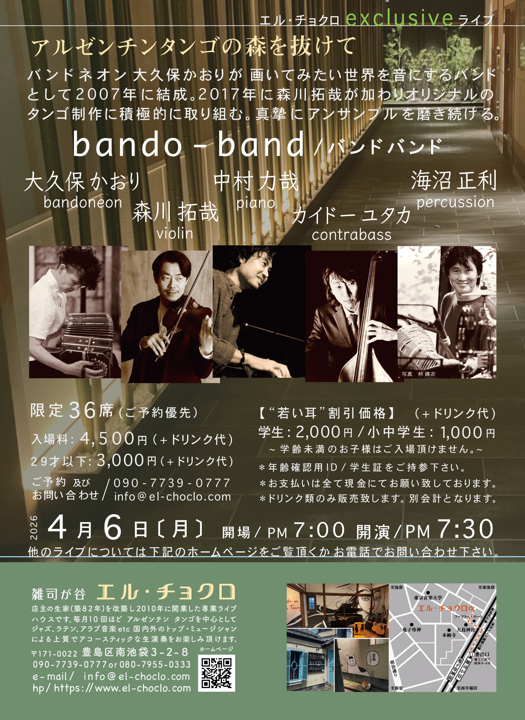 bando-band bandoneon · violin · piano・ contrabass · percussion